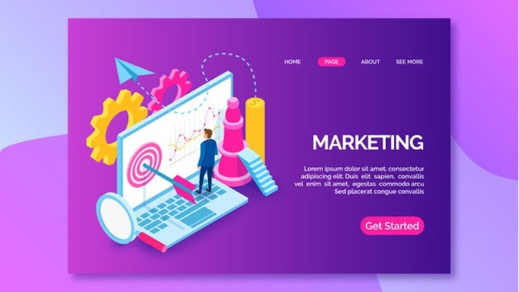 Landing Page With Isometric Marketing Laptop
